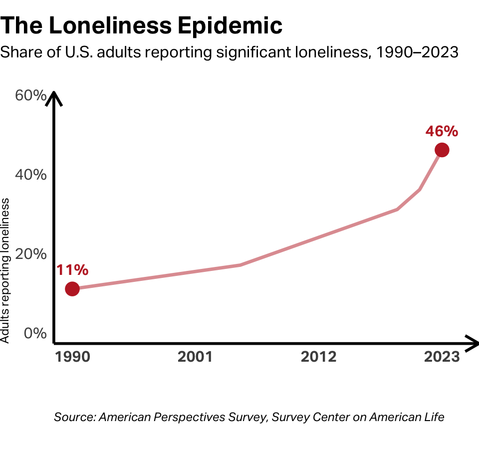 This is what Trow’s middle distance provided and what its absence left behind. The old civic infrastructure of American life was belonging’s infrastructure. Television offered a close substitute to satisfy the need, but it was serving empty calories. We didn’t really know the cast of Cheers, but we felt like we did. They were in our lives every Thursday night but Norm and the gang had no idea who we were. So, a hunger remained. We had frequency but we didn’t have mutual care.